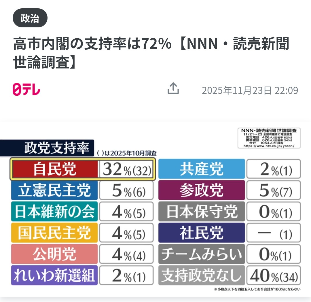 | … | 69無念Nameとしあき25/11/26(水)18:31:59No.1368913227そうだねx1 1764149519157.jpg-(161714 B) >上がらない自民の支持率 |