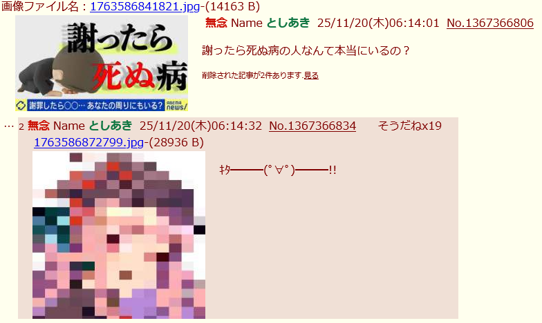 | … | 326無念Nameとしあき25/11/26(水)19:31:27No.1368929176そうだねx3誤報だ!って騒いでおきながら自分が誤情報拡散してたの本当に馬鹿みたい |