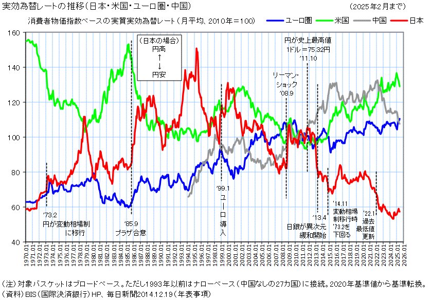 | … | 6無念Nameとしあき25/11/26(水)18:54:51No.1368919266+どんどん円安が進んで私たちは不安を感じているわけだが、このように新聞やテレビで「1ドル154・0円」とか「1ドル157・3円」などと報じられるドル円の為替レートは「名目為替レート」と経済学では呼ばれている。 |