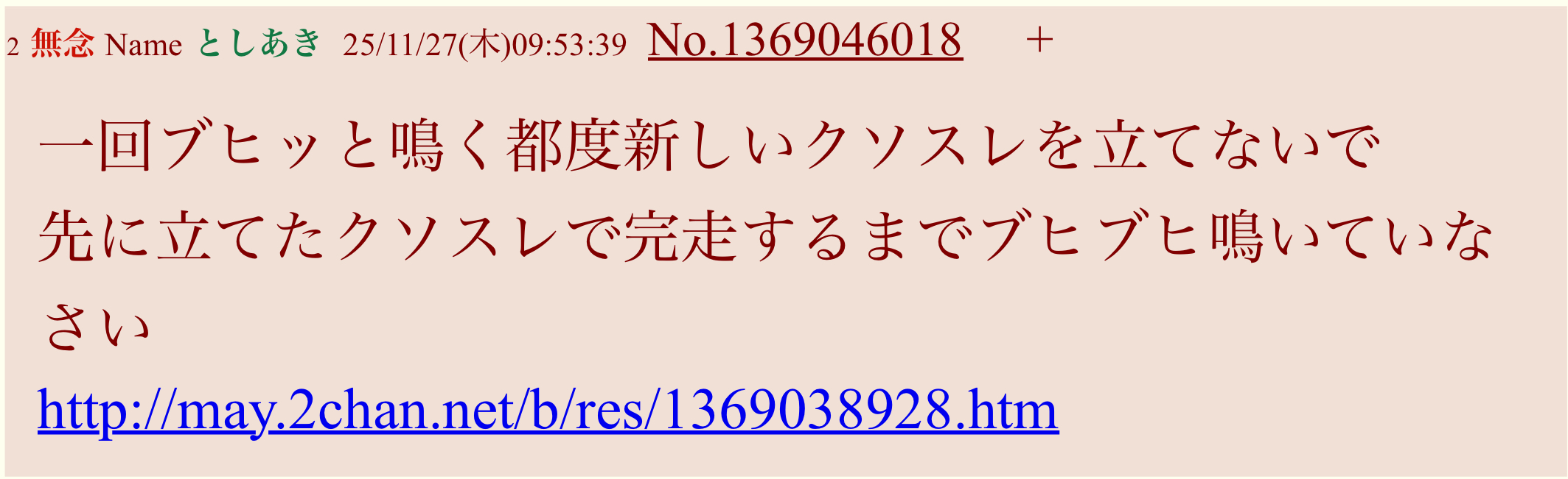 | … | 188無念Nameとしあき25/11/27(木)12:52:48No.1369073692そうだねx1>ID:DwN8JbJs |