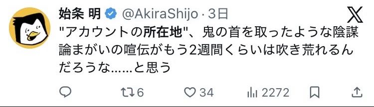 | … | 75無念Nameとしあき25/11/27(木)21:19:45No.1369180990そうだねx8日本で日本下げる発信してた連中が海外からだったは十分ニュースなのにね特に中国はガチの工作だし |