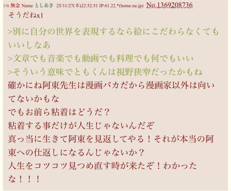 | … | 7無念Nameとしあき25/11/27(木)23:54:03 IP:133.201.*(mesh.ad.jp)No.1369222166そうだねx17 1764255243474.jpg-(38563 B) ×漫画バカ |