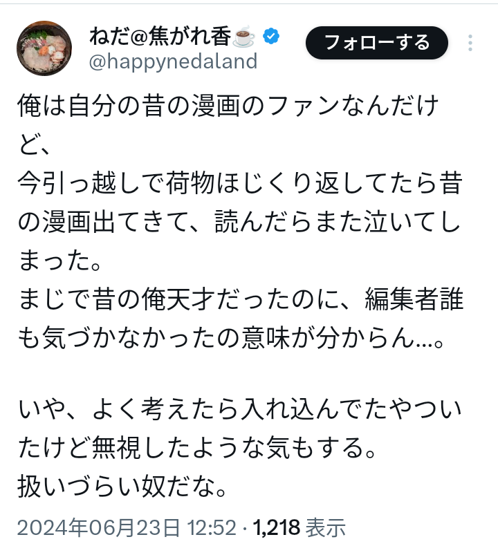| … | 83無念Nameとしあき25/11/28(金)10:19:54 IP:153.239.*(ocn.ne.jp)No.1369273318そうだねx1>組織の人間からの「あくまでも◯◯先生の実力があったからこそ連載始められたんですからor単行本化出来たんですから」といった社交辞令風洗脳をそのまま受け取ってるんだろうなって |