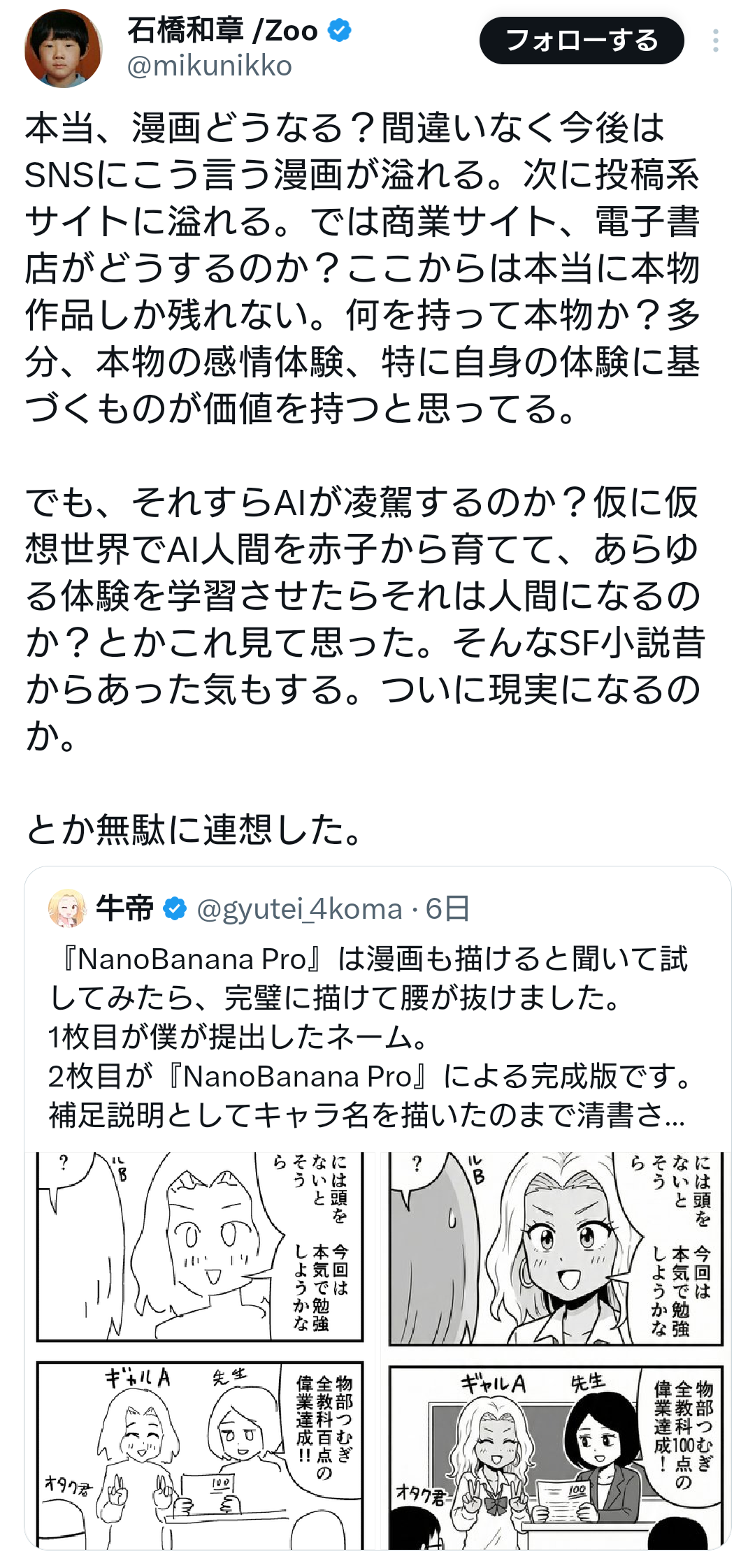 | … | 72無念Nameとしあき25/11/28(金)09:50:36 IP:202.89.*(bc9.ne.jp)No.1369269543+ 1764291036996.png-(818795 B) x見てたら佐渡島の奴隷のTOMOAKI〜誰にも勝てないあいつは〜だかの担当がまたAI関連の呟きしてたけど案の定というか界隈系の人間やあきまんにも否定的なこと言われてて笑うなの |
