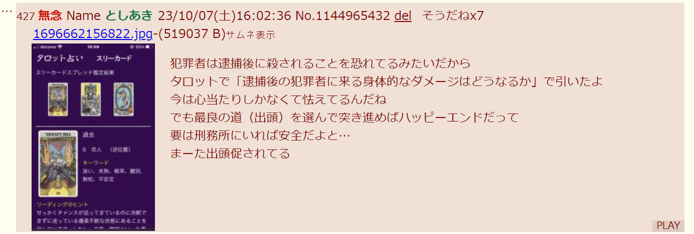 | … | 1無念Nameとしあき25/11/28(金)22:47:17No.1369422547そうだねx7そのタロットサイトのルールを破ってると聞いたが |