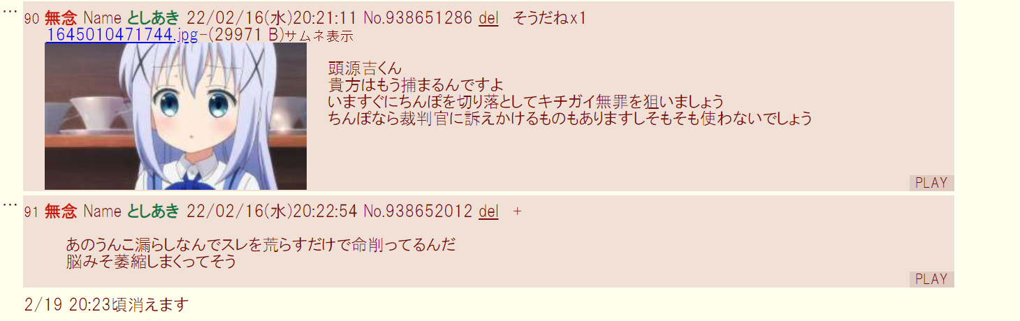 | … | 34無念Nameとしあき25/11/28(金)23:27:40No.1369433950+>>逮捕が怖くて震えてるの? |