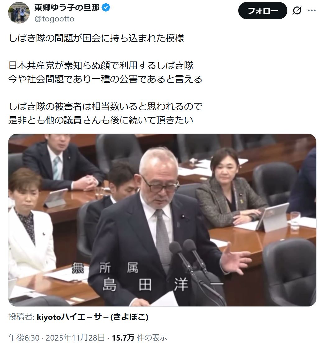 | … | 14無念Nameとしあき25/11/29(土)06:26:11No.1369469141そうだねx1>こんなのと付き合ってる政党には絶対票入れたくないわ |