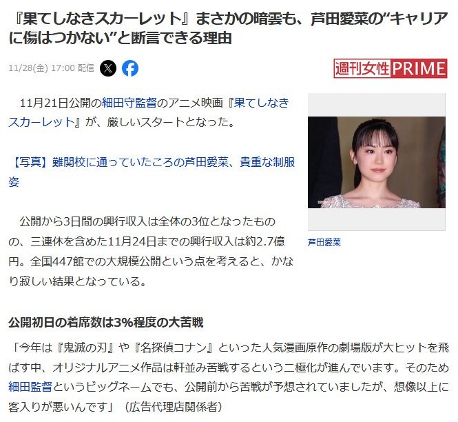 | … | 47無念Nameとしあき25/11/29(土)13:50:18No.1369540323+1000なら細田と新海と富岡が責任を取って腹を切る |