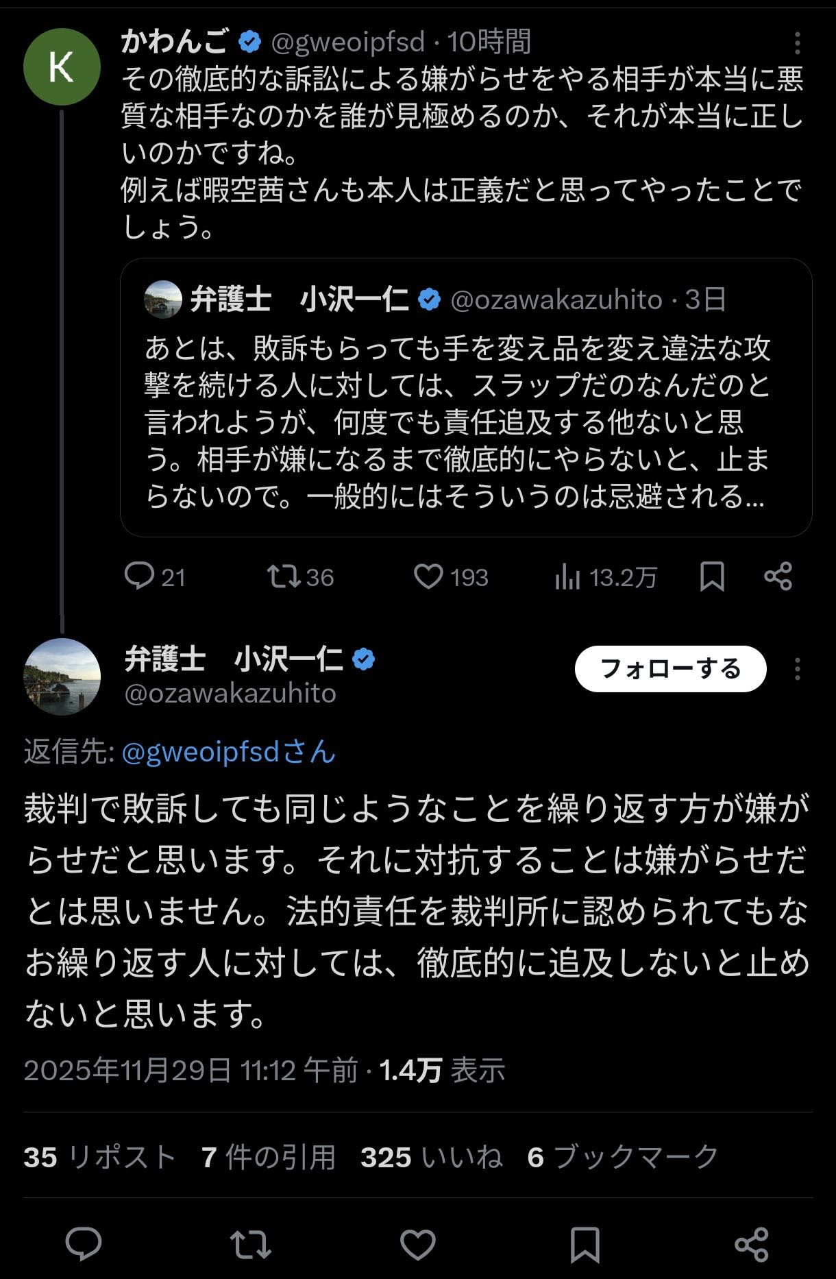 暇空茜の弁護士「敗訴しても同じようなことを繰り返す嫌がらせを行う者には徹底的に責任追及するしかない」