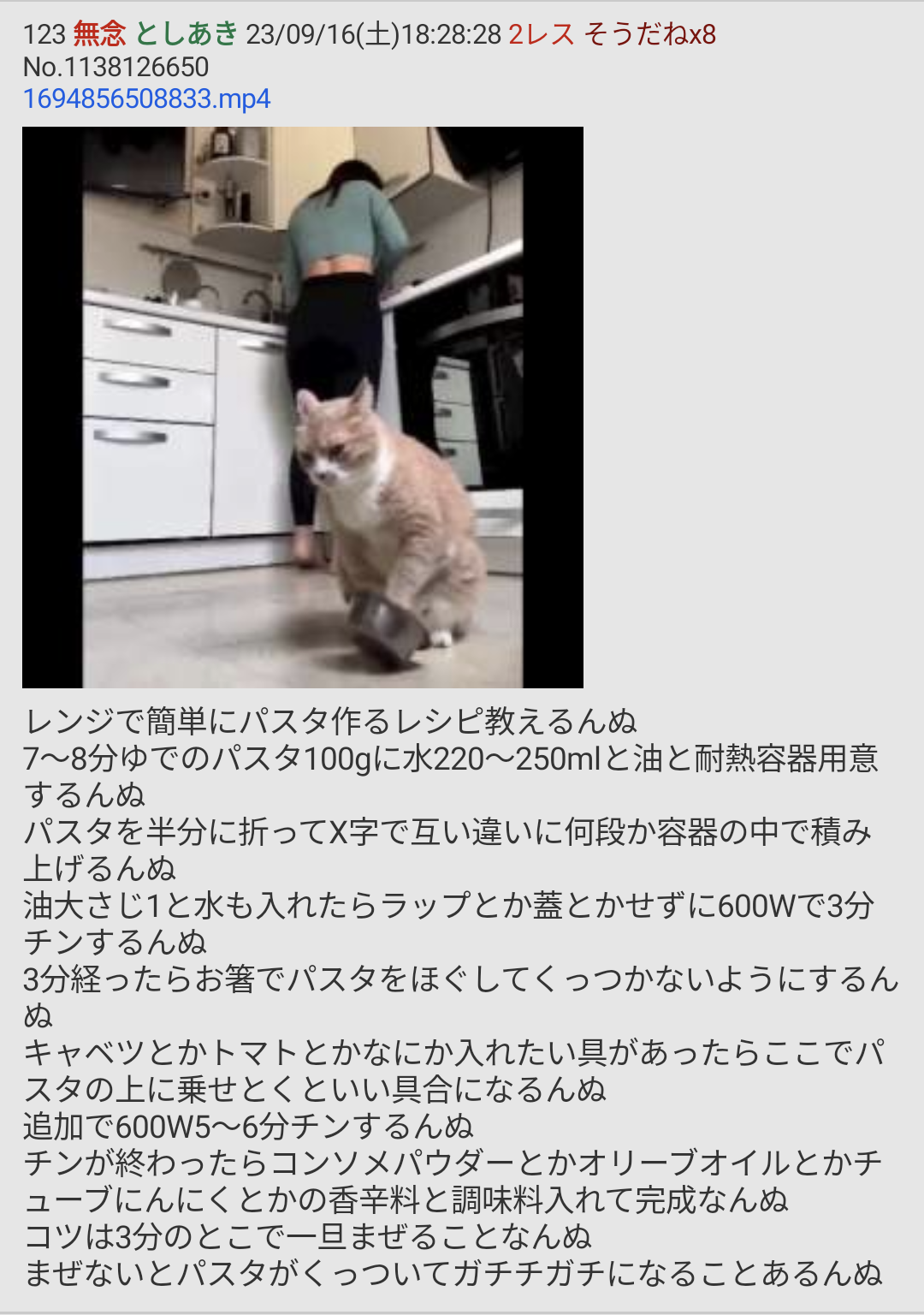 | … | 113無念Nameとしあき25/12/01(月)22:36:11No.1370165333+ 1764596171491.webm-(2948361 B) パスタ食べたいにゃん |