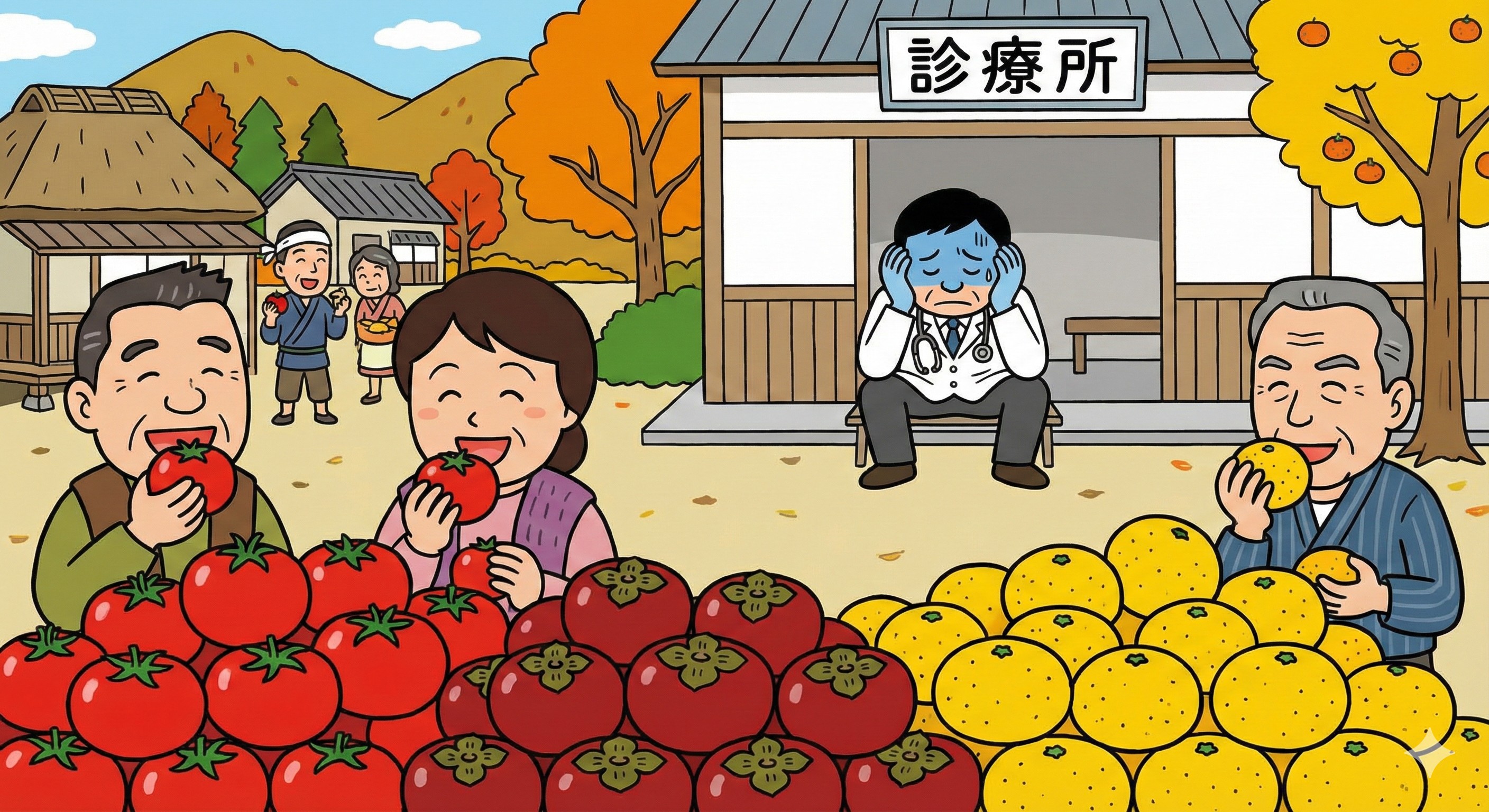 | … | 91無念Nameとしあき25/12/01(月)22:49:30No.1370168426+トマトが赤く柿が赤くミカンが黄色くなると青くなる医者想像すると面白いな |