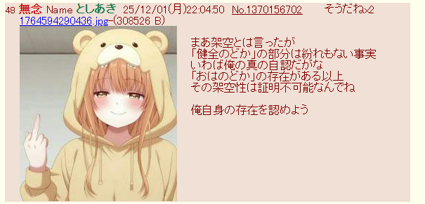 | … | 14無念Nameとしあき25/12/01(月)21:56:21No.1370154178そうだねx7おはのどか^〜 |