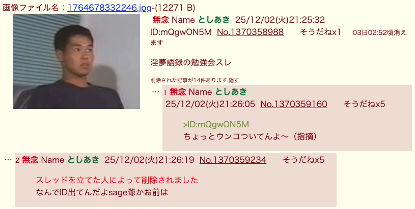 | … | 94無念Nameとしあき25/12/02(火)21:52:31No.1370367264そうだねx8>sage爺は淫夢語録より |