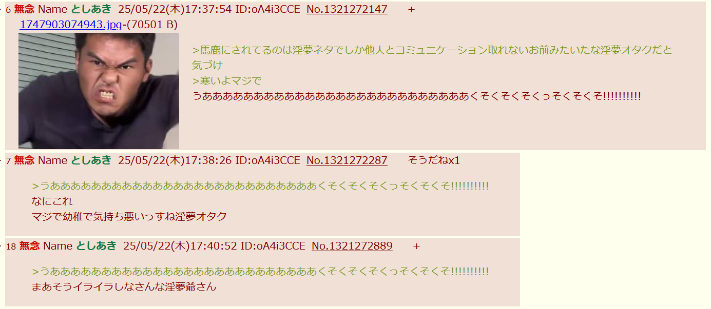 | … | 39無念Nameとしあき25/12/02(火)21:36:44 ID:mQgwON5MNo.1370362594+煽りや荒らしで使える淫夢画像なんかも有り |