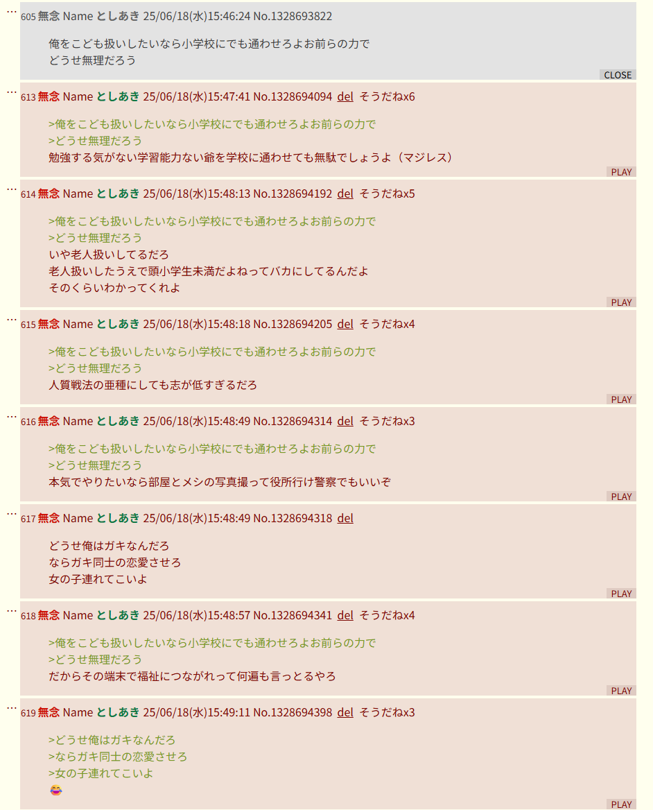 | … | 142無念Nameとしあき25/12/03(水)00:10:56No.1370402656そうだねx2>sage爺クソスレ立てておめえなにやってんだペエ! |