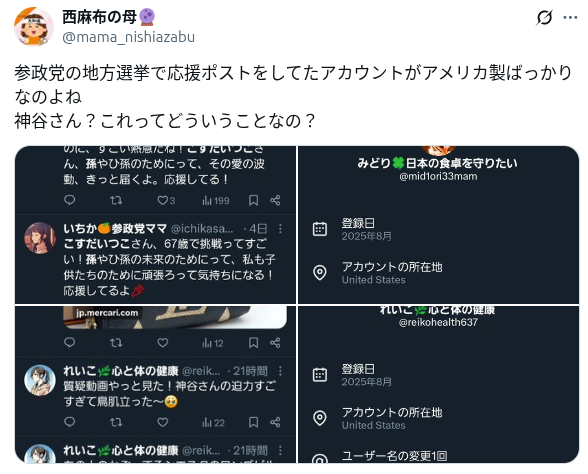 | … | 358無念Nameとしあき25/12/03(水)11:22:42No.1370460728+>中国が酷すぎて参政党の影が薄くなったね |