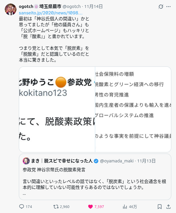 | … | 74無念Nameとしあき25/12/03(水)08:51:44No.1370442212そうだねx1>参政党の神谷の超アホなところは1割の移民は容認するとかいうところ |