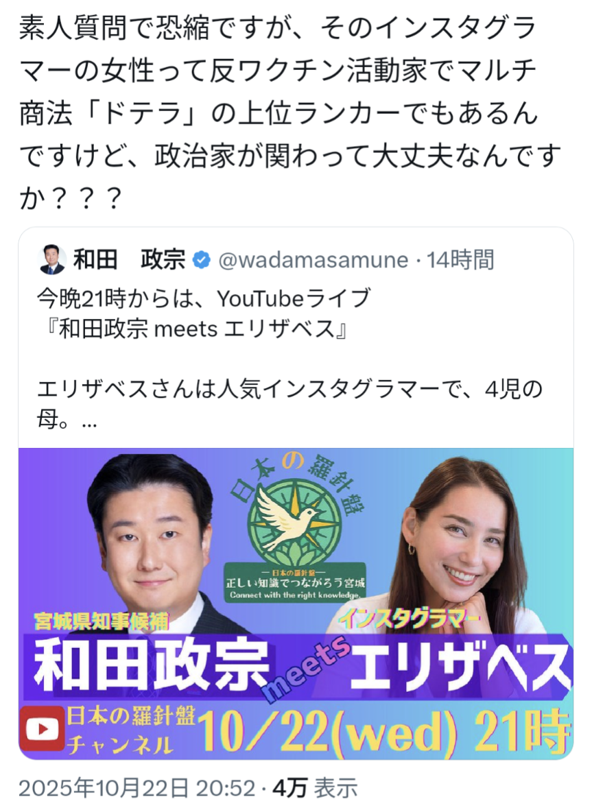 | … | 52無念Nameとしあき25/12/03(水)08:45:26No.1370441613+宮城県知事選で参政党から出た人か |