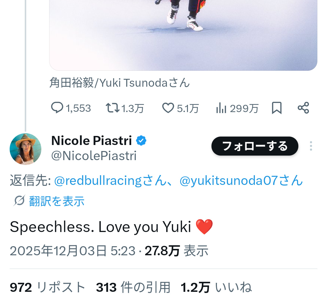 | … | 28無念Nameとしあき25/12/03(水)10:55:46No.1370457124+本人はレッドブルのドライバーって言ってた気がする |