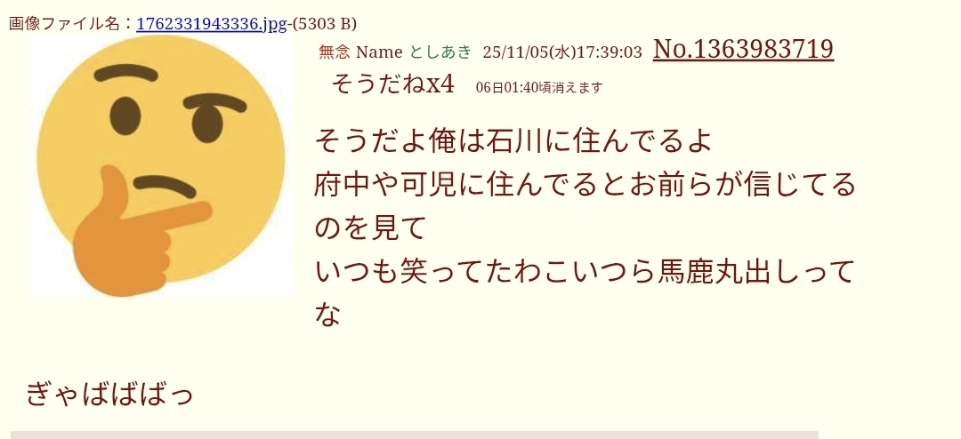 | … | 75無念Nameとしあき25/12/03(水)22:59:47No.1370611733+ 1764770387678.jpg-(351274 B) 金沢に対する異常な執着 |