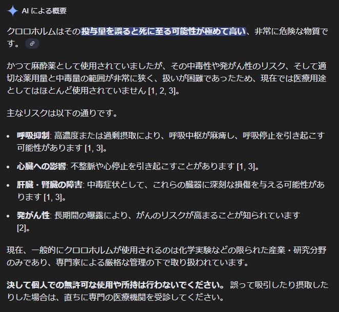 | … | 12無念Nameとしあき25/12/04(木)13:58:49No.1370703901そうだねx1>あとクロロホルムって刺激臭凄いぞ |
