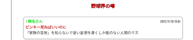 | … | 37無念Nameとしあき25/12/04(木)15:28:19No.1370716982そうだねx8>粘着相手はいっぱいいるみたい |