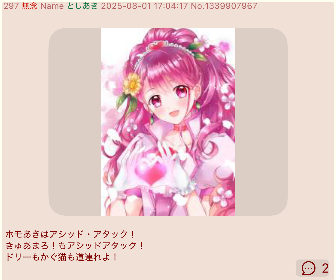 | … | 51無念Nameとしあき25/12/04(木)15:32:10No.1370717567そうだねx2>きゅあまろ |