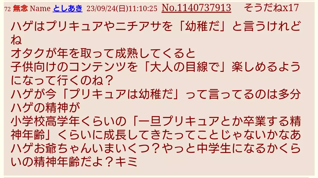 | … | 30無念Nameとしあき25/12/04(木)21:06:47No.1370791711+>sage爺連呼してるのもプリキュア関連でしょ? |
