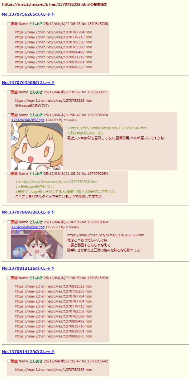 | … | 333無念Nameとしあき25/12/05(金)00:16:20No.1370836020そうだねx3撹乱してるつもりなのかねえ |