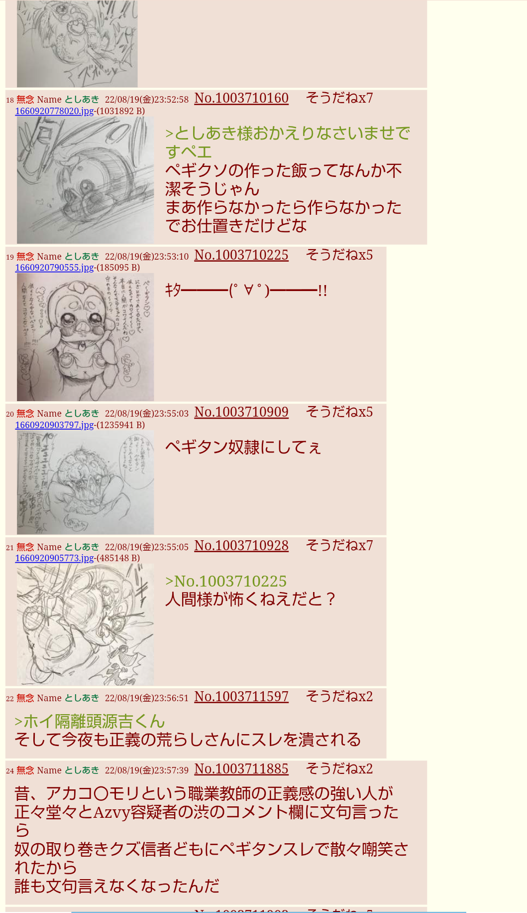 | … | 331無念Nameとしあき25/12/05(金)00:15:40No.1370835903+>俺はいつもホモに痛めつけられてのどかスレで泣いてるsage爺だ |