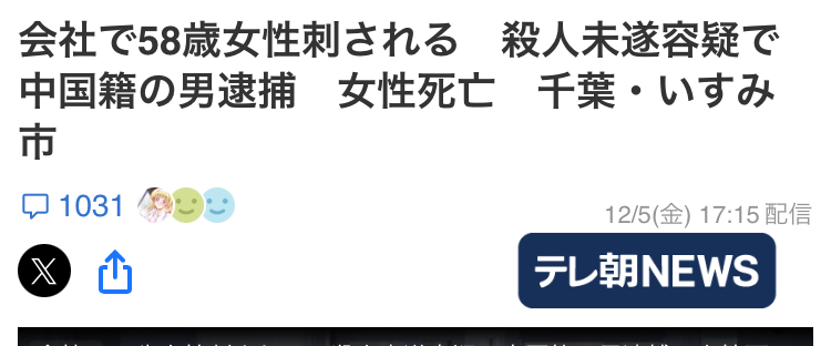| … | 40無念Nameとしあき25/12/05(金)18:15:25No.1370956657そうだねx6また埼玉だかで中国人が日本人を切りつけたそうだな |