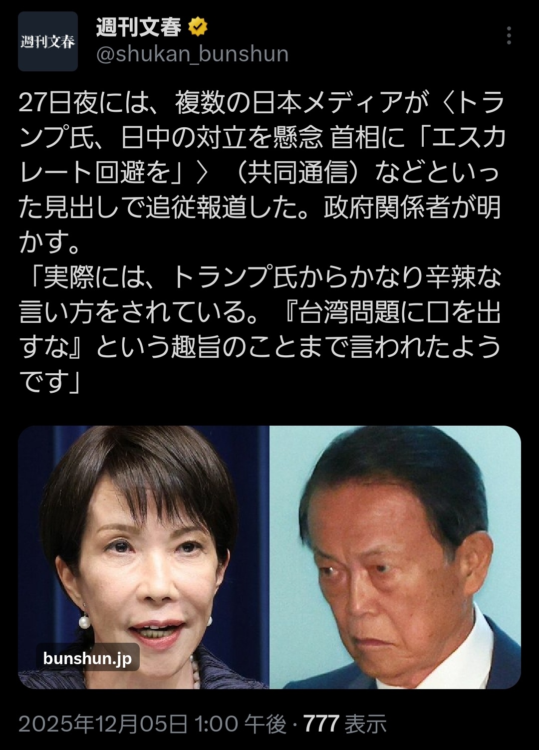 | … | 180無念Nameとしあき25/12/06(土)01:01:40No.1371054942そうだねx1 1764950500359.jpg-(157735 B) >台湾口実にされてて笑った |