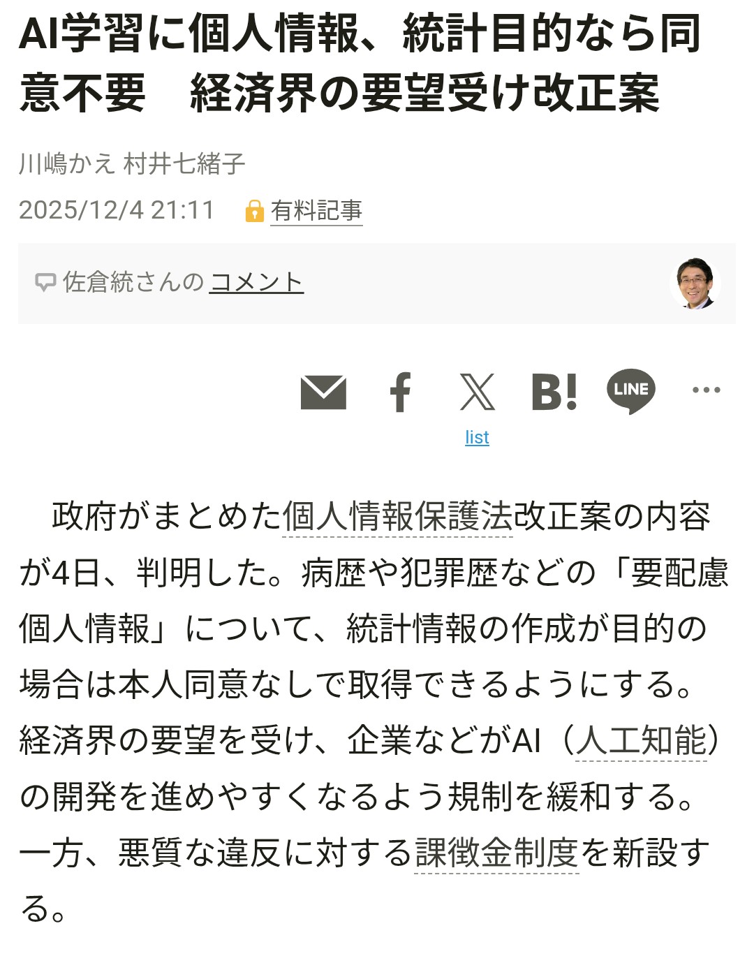 | … | 76無念Nameとしあき25/12/06(土)03:19:05No.1371065503そうだねx1企業の要望で人間の個人情報使わせろ |