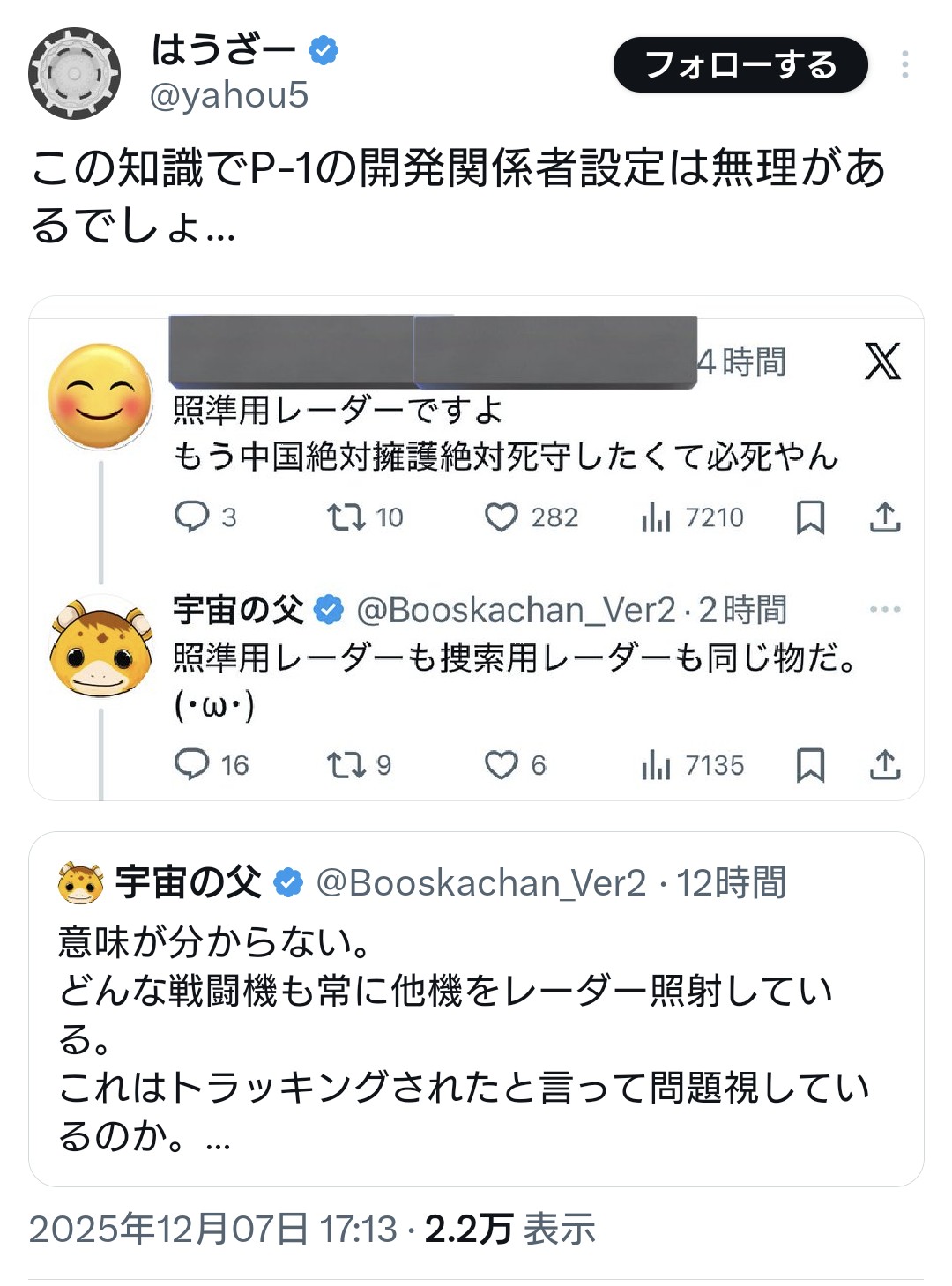 | … | 12無念Nameとしあき25/12/07(日)23:05:34No.1371552000そうだねx17とうとうレーダー照射まで(苦笑 |