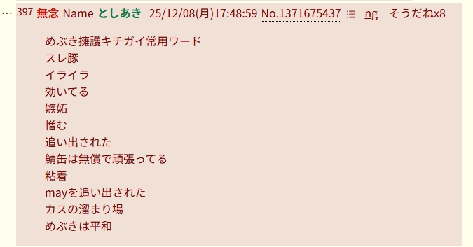 | … | 6無念Nameとしあき25/12/08(月)20:06:13No.1371707233そうだねx3>めぶきスレにあったレスで |