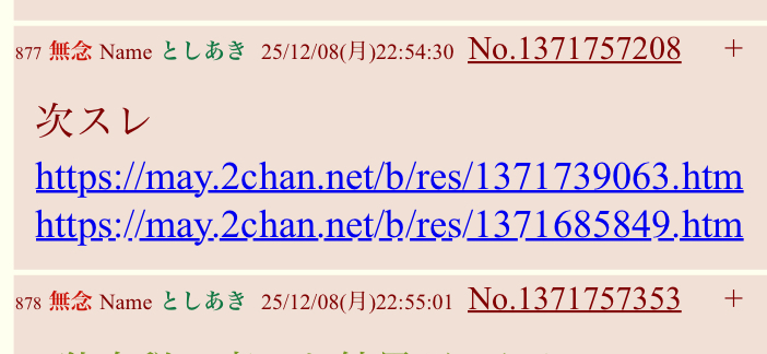 | … | 86無念Nameとしあき25/12/08(月)23:53:20No.1371777073そうだねx5研究者によると無関係のスレを次スレと言ってURL貼ることで |