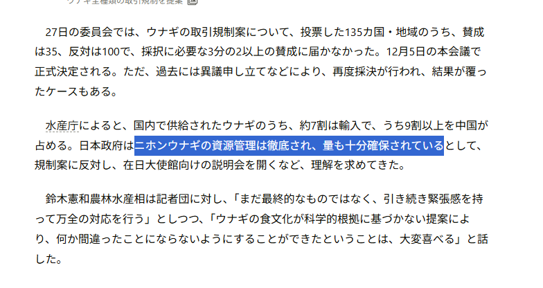 | … | 69無念Nameとしあき25/12/09(火)05:01:08No.1371804457そうだねx2 1765224068198.jpg-(49701 B) >一番いいのはウナギの販売に制限かけること |