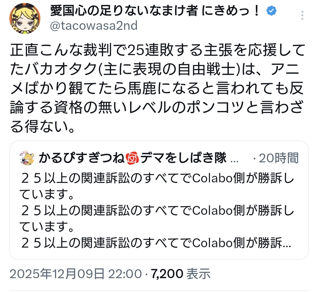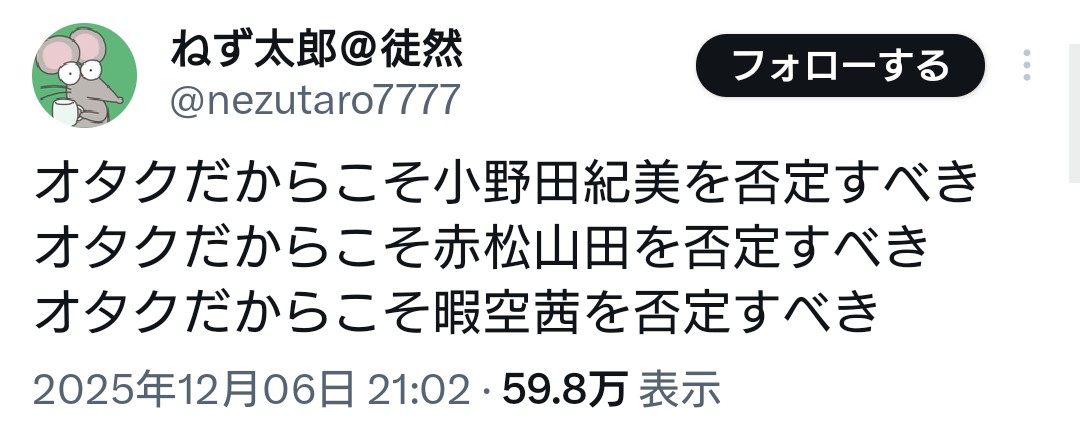 | … | 439無念Nameとしあき25/12/10(水)13:28:16No.1372067055+>また非実在型炎上仕掛けてたのかい |