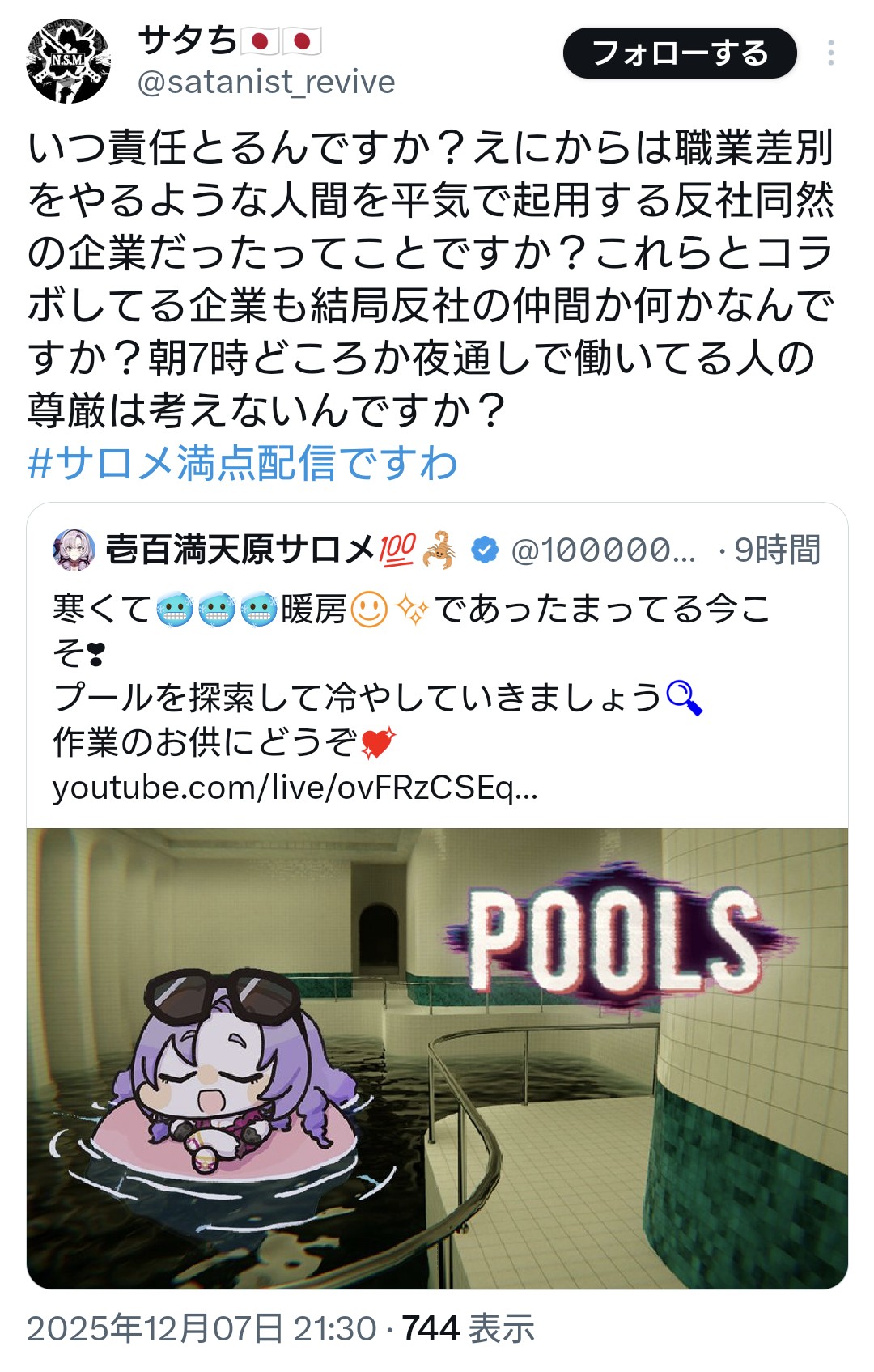 | … | 354無念Nameとしあき25/12/10(水)12:27:12No.1372055971+>Vtuberに謝罪させるのは辞めたほうが良いと思う |