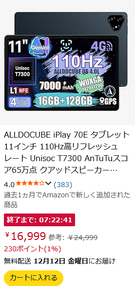 | … | 192無念Nameとしあき25/12/10(水)14:48:07No.1372079525+>それの11インチ版的なのが今セールでこの値段よ |