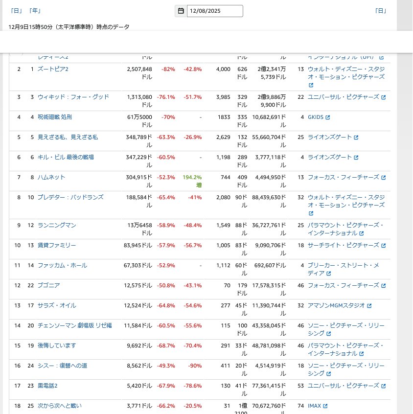 | … | 13無念Nameとしあき25/12/10(水)18:27:39No.1372114963そうだねx1鬼滅は国内400億も無理そう |