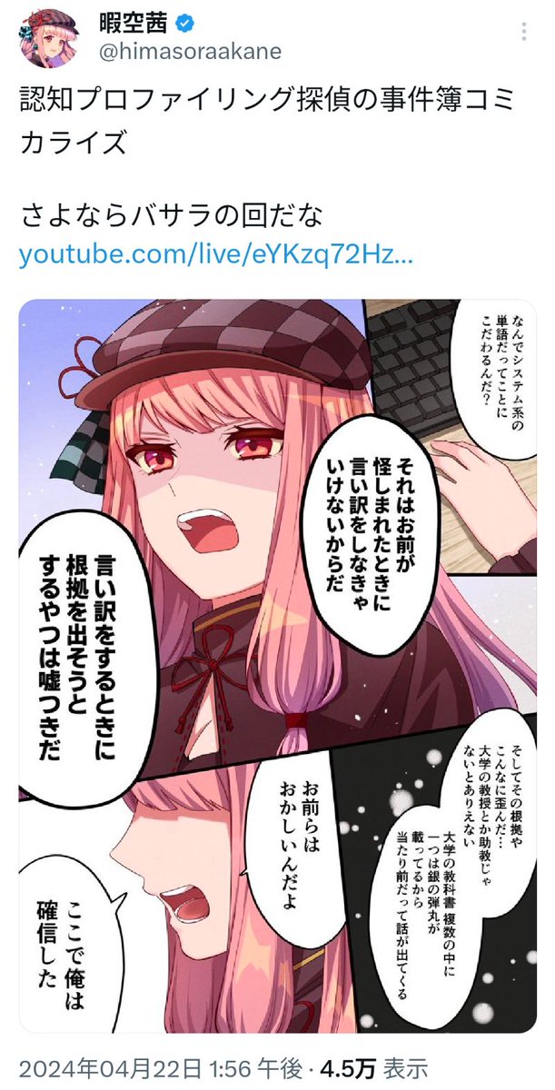 | … | 291無念Nameとしあき25/12/12(金)00:32:08No.1372420622そうだねx3こんな奴でもまだ暇空本人よりは会話になりえるんだろうなと思うと取り調べしてる警察官におつかれさまの一言も送りたくなるな |