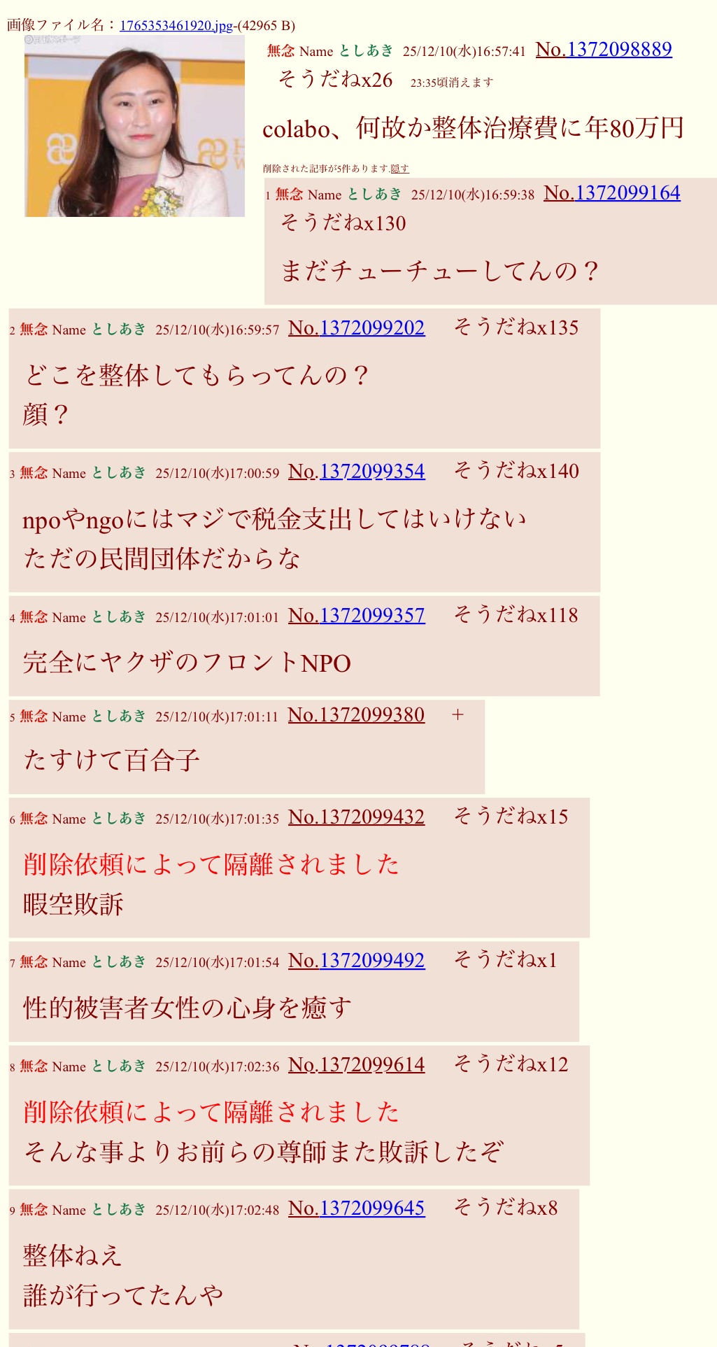 | … | 44無念Nameとしあき25/12/11(木)22:49:22No.1372397981そうだねx4 1765460962139.jpg-(257310 B) >スレ画のおっさんを支持する発端だったNPO団体の悪事とやらが一つも立証できず敗訴した時点で |