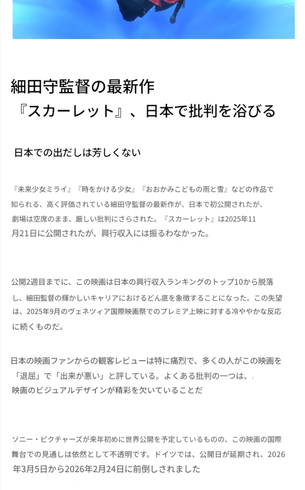 | … | 110無念Nameとしあき25/12/12(金)16:57:57No.1372527796+元々欧米での細田監督作品の評価はどうだったんだろうな |