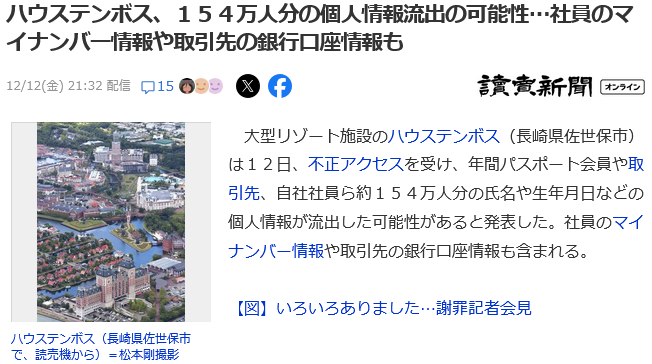 | … | 12無念Nameとしあき25/12/12(金)22:50:39No.1372616294+>マイナンバーや取引先口座情報までとかどんな管理しとんねん |