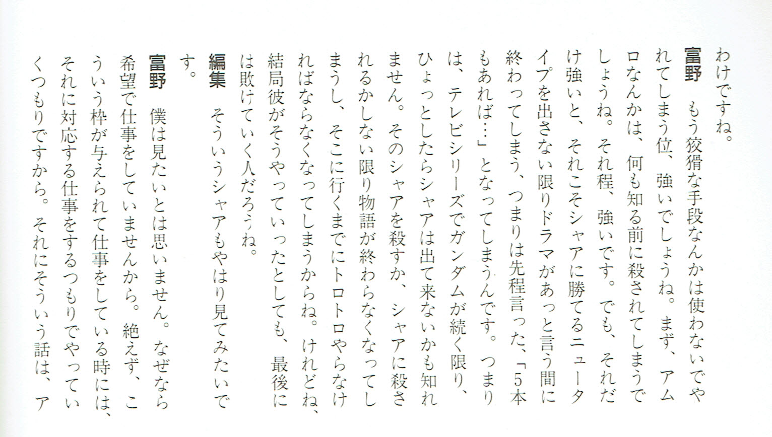 | … | 108無念Nameとしあき25/12/14(日)07:59:38No.1372913569+>富野は一貫してシャアのほうが強いと考えてる |