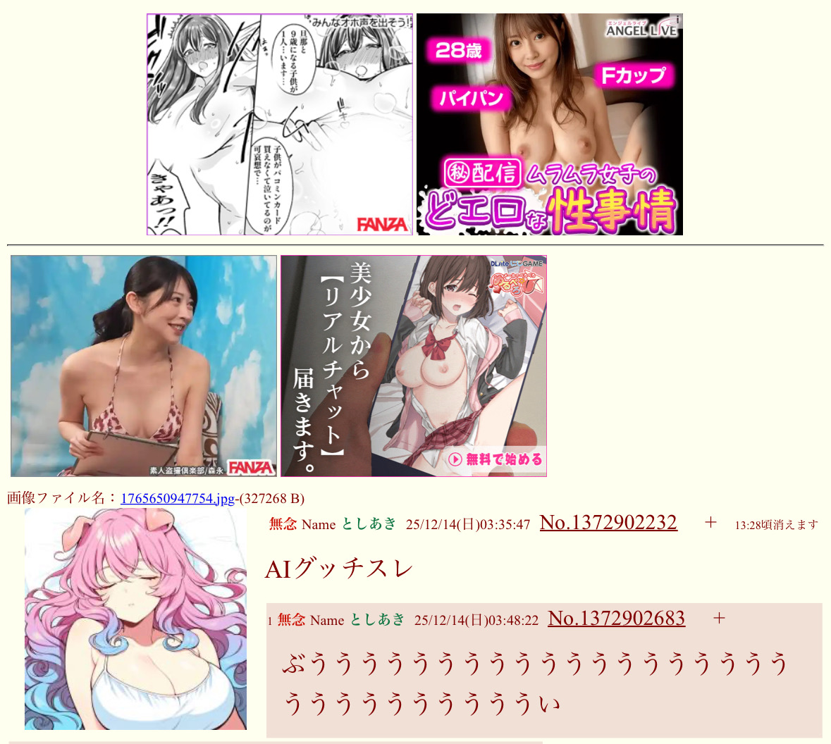 | … | 4無念Nameとしあき25/12/14(日)03:51:30No.1372902781+神IDスレが勃起ったぶい |