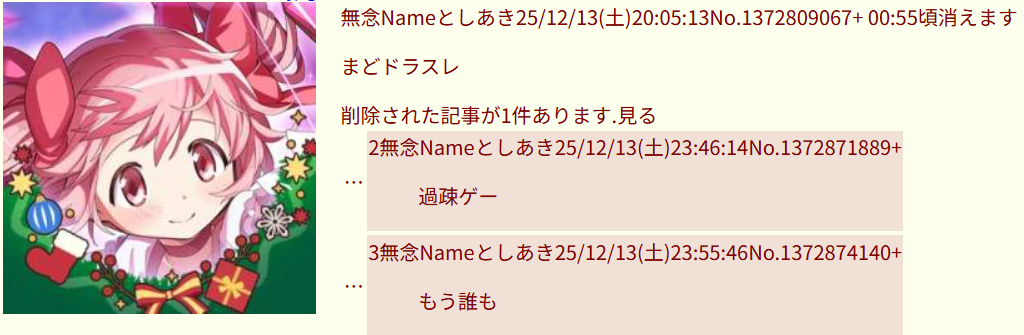 | … | 74無念Nameとしあき25/12/15(月)21:25:45No.1373325639+まどドラスレ久々に見た |