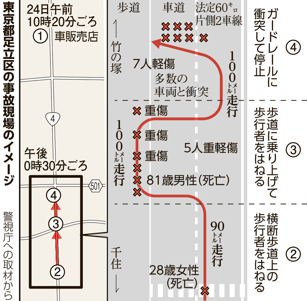 盗難車で暴走の男再逮捕 危険運転致死容疑など、氏名も公表―足立14人死傷・警視庁