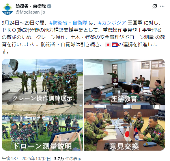 | … | 195無念Nameとしあき25/12/16(火)02:46:24No.1373383447+ 1765820784091.png-(462064 B) 自衛隊「カンボジアを支援します」 |